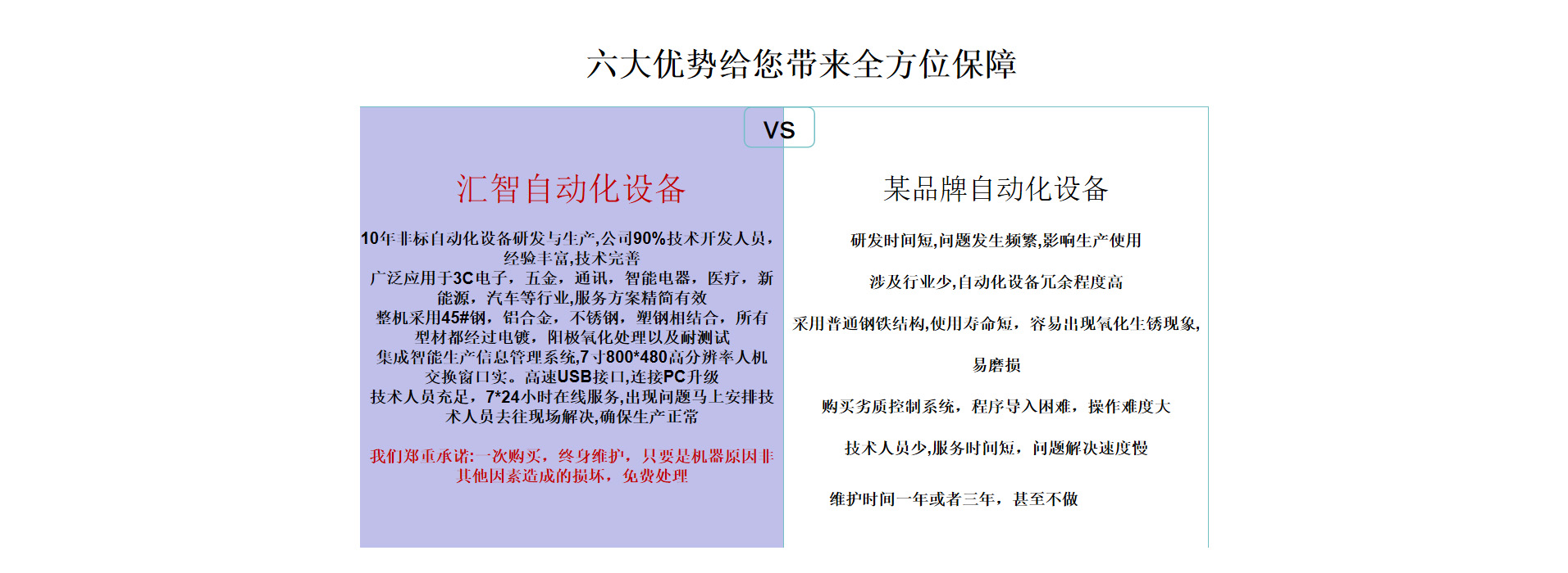 寧波匯智自動(dòng)化科技有限公司是一家集設(shè)計(jì)、生產(chǎn)、銷(xiāo)售和服務(wù)于一體的非標(biāo)定制自動(dòng)化組裝設(shè)備供應(yīng)商,有近十年的服務(wù)于自動(dòng)化的行業(yè)經(jīng)驗(yàn),充分了解各個(gè)的產(chǎn)品工藝,一直致力于推廣和普及自動(dòng)化產(chǎn)品,提供可靠和成熟穩(wěn)定的自動(dòng)化設(shè)備,協(xié)助客戶(hù)提高自動(dòng)化工作的生產(chǎn)效率和自動(dòng)化,從而把操作工的雙手從簡(jiǎn)單、重復(fù)性和危險(xiǎn)性的勞動(dòng)中掙脫出來(lái),讓人可以做更有價(jià)值的工作。 公司擁有一批經(jīng)驗(yàn)豐富的管理人才和可靠的技術(shù)人才,采用先進(jìn)的質(zhì)量管理體系,與國(guó)內(nèi)外一些企業(yè)建立了長(zhǎng)期友好的合作關(guān)系,產(chǎn)品遠(yuǎn)銷(xiāo)歐美洲等發(fā)達(dá)地區(qū),公司可提供從初期的產(chǎn)品工藝規(guī)劃,工藝開(kāi)發(fā),設(shè)備選型,自動(dòng)化配合和生產(chǎn)運(yùn)作的整體技術(shù)支持,系統(tǒng)化的規(guī)劃考量,可避免以往不同的設(shè)備和自動(dòng)化廠(chǎng)商提作過(guò)程中信息不暢考慮不周的問(wèn)題?!?